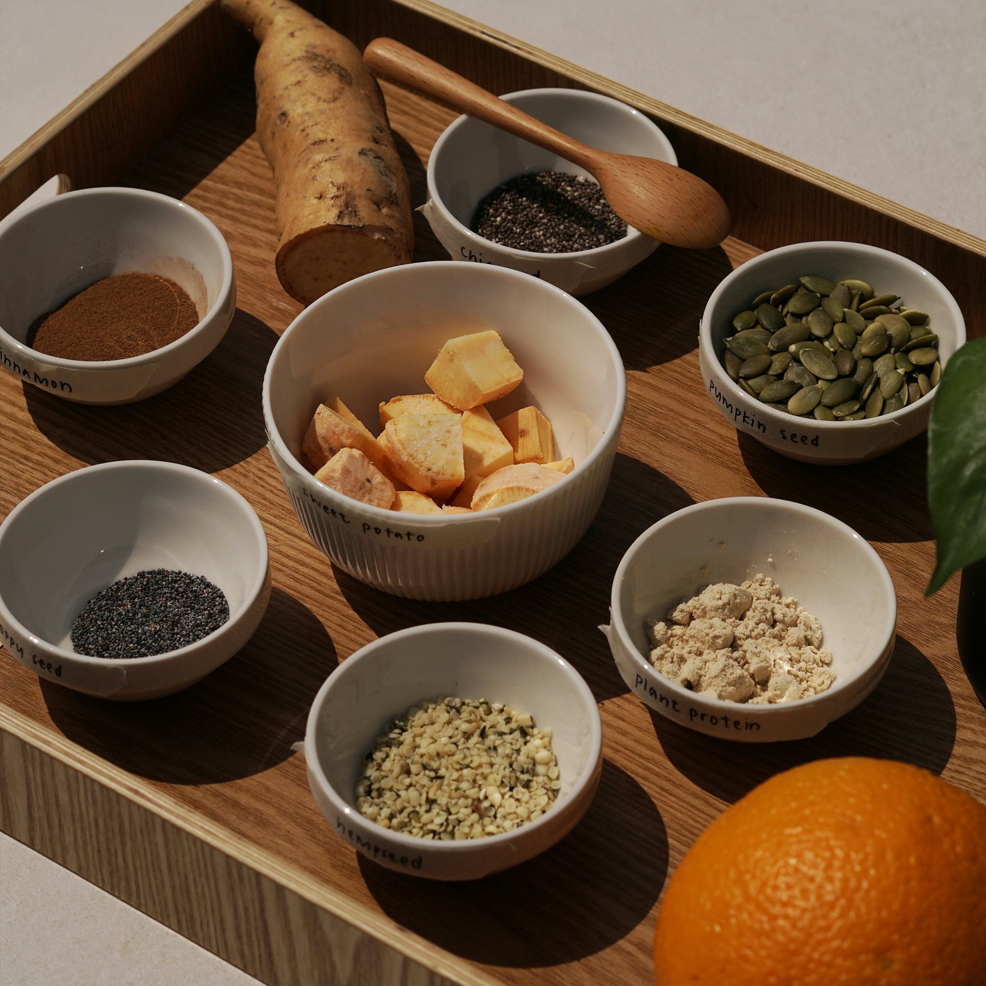 We always kickstart our creations by diving into a wide range of nutritional research on Earth's produce. We use this knowledge to connect combinations of ingredients to specific functions, before showcasing their flavours and nourishing powers in the form of our products. We aim to deliver not only fuss-free pleasure to your tastebuds, but also a function that addresses your body's needs.